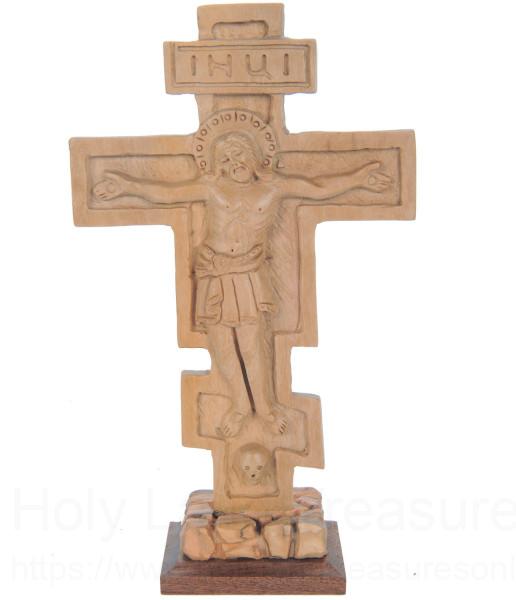 This is a beautiful Standing Orthodox Cross made from the finest olive wood and beautifully hand-carved in Bethlehem. Orthodox Christians everywhere will love this cross with its intricate detail.