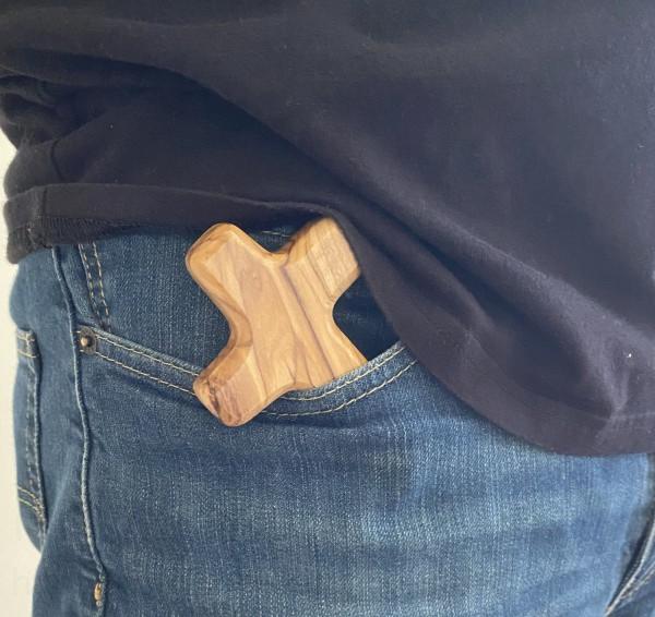 Size: Medium Pocket Cross - approximately 4" x 2.5" x 0.5"