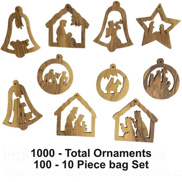 About this Wholesale Large Olive Wood Christmas Ornament Set | 10 Assorted in Bag | 1,000 Ornaments @ $1.35 Each