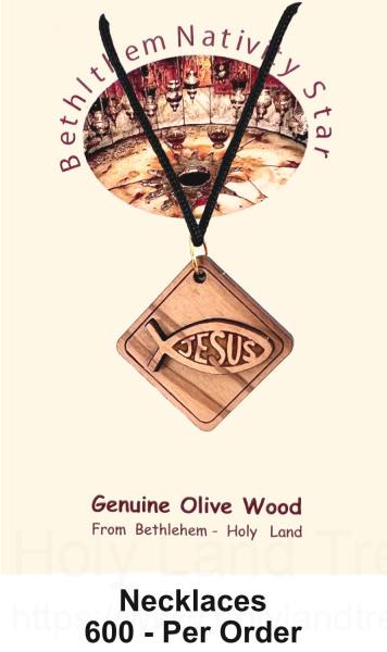 The pendant is made of genuine olive wood from the Holy Land.